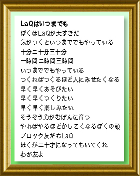 LaQが大好きでいつまででもやっていることを伝えたくて書きました。