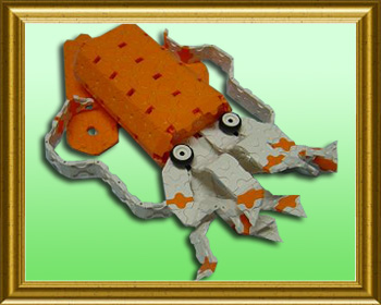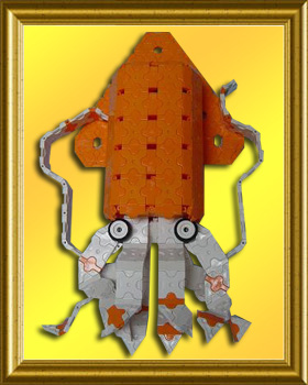 生きているイカは赤いのでリアルなモデルといえるじゃろう。左右対称でないから自然な躍動感がでておるのう。