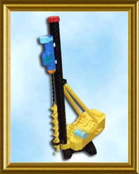 建設重機シリーズ8作目です。ドリル部分がスライドして上下します。今回も全体が重くなり過ぎて、旋回中心を合わせるのに苦労しました。