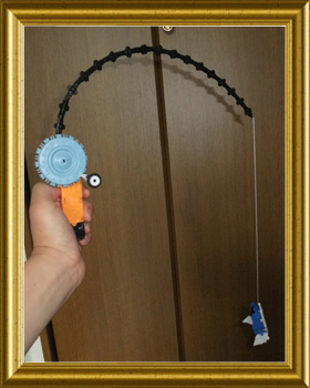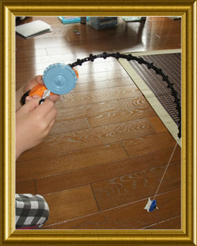 ハマクロンシャフトのしなりをうまく活用したのう。リール部もうまくつくってあるぞい!