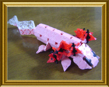 一世を風靡した動物よのう。えらの表現がいい感じじゃ!ピンク色のパーツにちょうど良い題材じゃな!