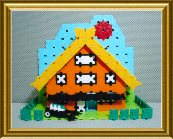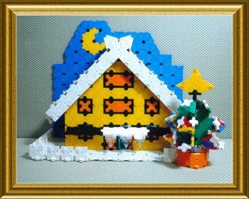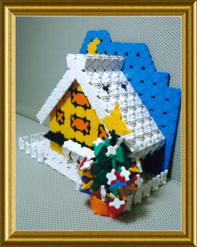 初雪で薄化粧した合掌作り風ロッジ作ってみました。外は一面の銀世界!もみの木もクリスマスツリーにドレスアップ。!!夏バージョンもあり、、、、ロッジがいいかな〜