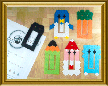 書類クリップをした時、LaQで作れないかと思い作ってみました。基本の形(黒色クリップ)から発展させれば、かわいいいろんなクリップが作れます