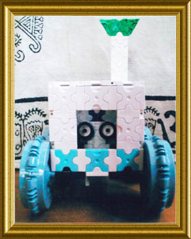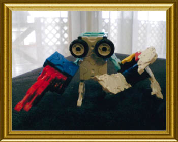 まずロボットを作りました。うでを2種類作って、付けかえられるようにしました。(ドリルバージョン・ファイヤーバージョン)。ロボット用の車も作りました。しょうらいは、本物のロボットを作る人になりたいです。