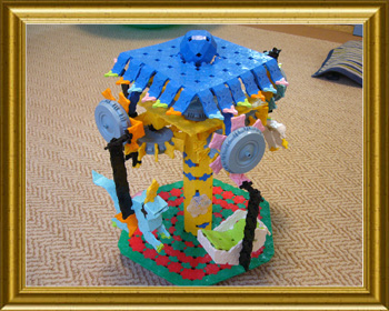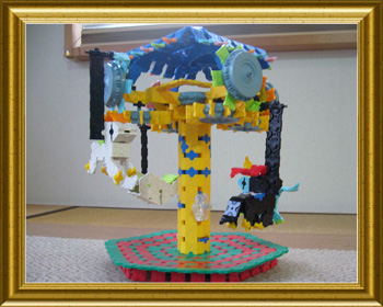 遊園地にあるメリーゴーランドが上下に動いていたのを見て、LaQでも作れないかな、と思って作ってみました。歯車をうまくかみあわ せるのが、難しかったです。