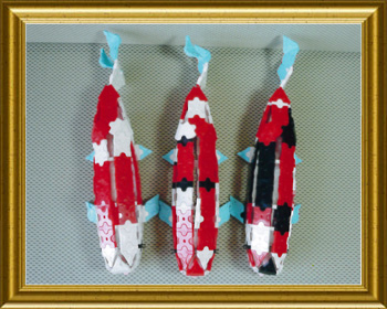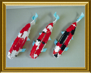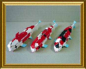色彩や斑点が美しい錦鯉… 基本とも言える紅白、大正三色、昭和三色泳がしてみました。三匹揃ってかコイ〜でしょう♪