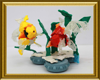 クリアパーツを使ったヒレの表現と水草が水の流れを連想させるのう。金魚がゆったりと泳ぐ姿が目に浮かぶようじゃ。