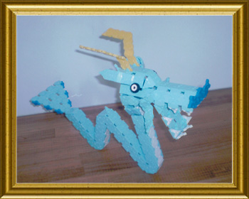 ぼくが竜をえらんだわけは、ティッシュのふくろに竜がついていてラキューでつくってみたいと思ってえらびました。作るのに時間がかかったけど、できたときはとてもうれしかったです。とくに顔のぶぶんがむずかしかったです。