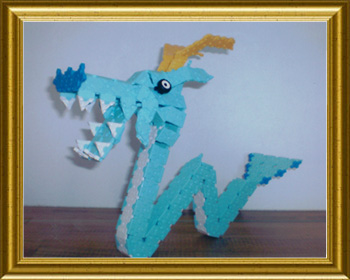 何とも愛らしい表情の水色龍じゃ。くねっと曲がった体で水の中を泳ぎ回りそうじゃのう。