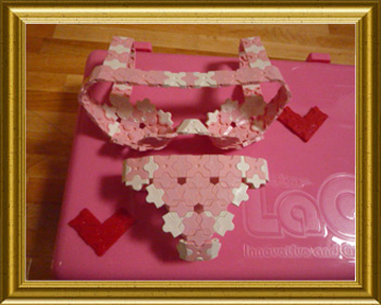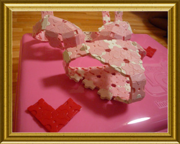 真面目に作りました。はじめは着用できる位の大きさにしたかったのですが、このサイズになってしまいました。白いレースが気にいっています。