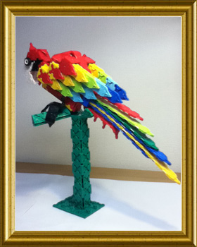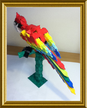 動物園で見たコンゴウインコを作りました。 羽はひたすら詰め込んでボリュームを出しました。 カラフルに仕上がりました。