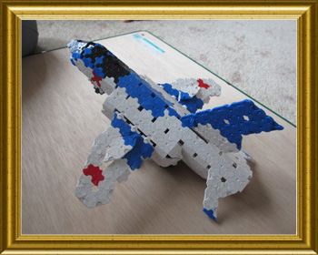 ブルーインパルスの模型を見て、作ってみたくなりました。エンジンの中の炎も再現、カーブが多くつなぐのに苦労しました。つばさのカラーリングとイメージを壊さないようにしたのが難しかった。あと先端を閉じるのにイメージが崩れてしまい、なんども作り直しました。こんどは実物を見に行きたいです。