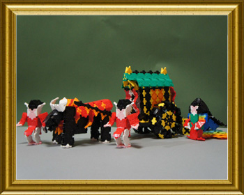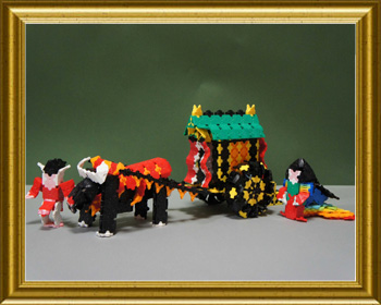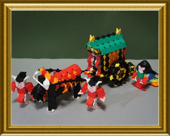 車輪部分の黒と黄色で、きらびやかな雰囲気を出しました。おまけの役人と姫が意外に、いい感じに大河ドラマ風?になったと思います。