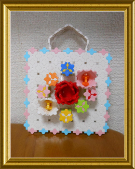 白いバックとパステルカラーの縁取りがお花の可憐な雰囲気と良く合っておるのう。色遣いがとっても綺麗な作品じゃ。