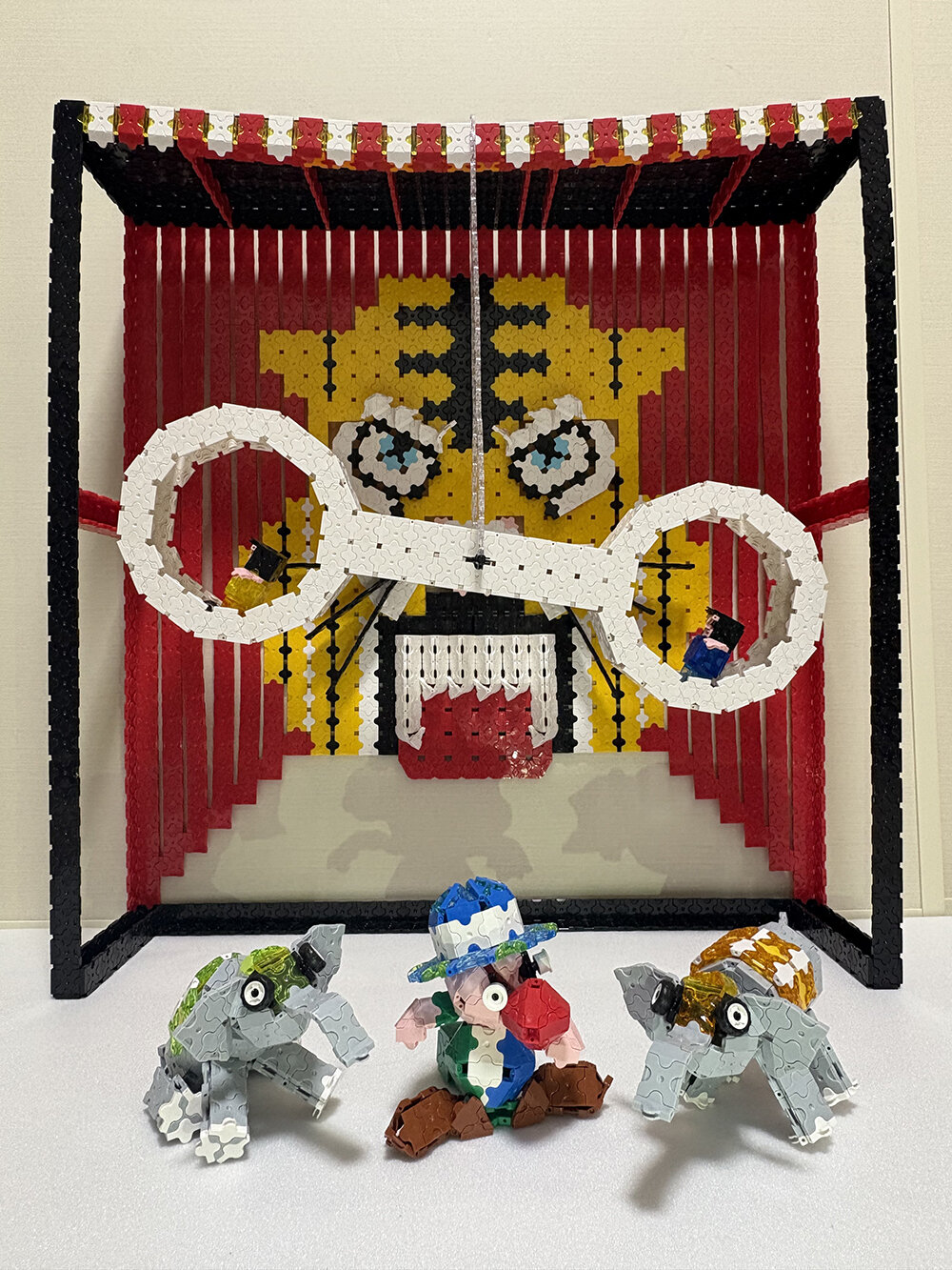 何度も何度も調整した空中大車輪、見事に仕上がっております!中に乗っている人の動きも完璧ですね!ド迫力の虎も顔の精密さに加えてベルトの長さでステージの奥行きを表現している点も素晴らしいです!(レッド)