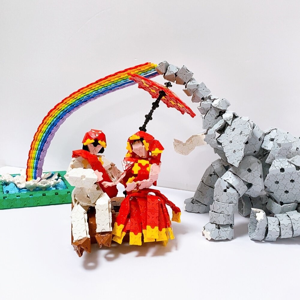私もタイに行ったことがあるんですが、まさにタイの雰囲気そのものですね!ゾウの足や鼻部分が輪っかで繋がれていて作り込みが半端ないです!この素晴らしい作品をご結婚されたご本人に是非見ていただきたいですね!(オレンジ)