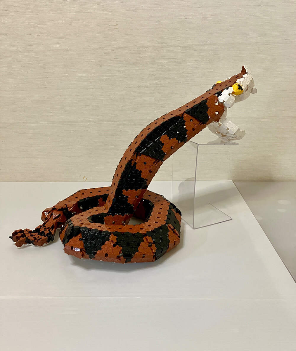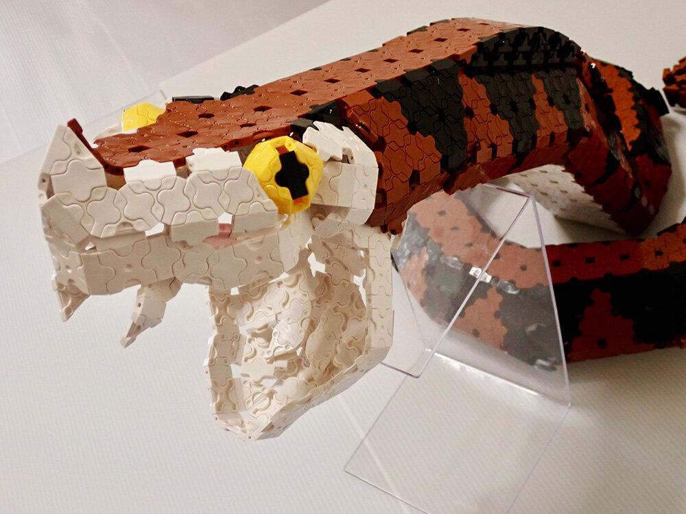 巻いたとぐろから頭をもたげて飛びかかろうとするヘビならではの動きがとても自然に組み立てられています。規則的に並ぶ三角模様やピット器官など特徴を掴んだこだわりがさらに説得力を持たせますね。(イエロー)