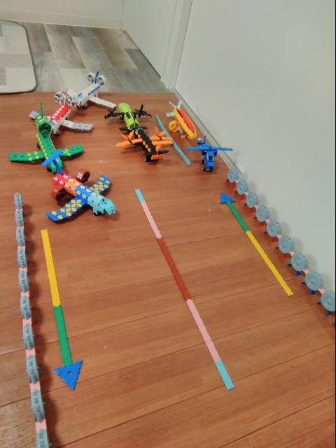 ジェットエンジンの部分がうまくできました 滑走路の順番待ちをしています 色々な種類の空の乗り物があります