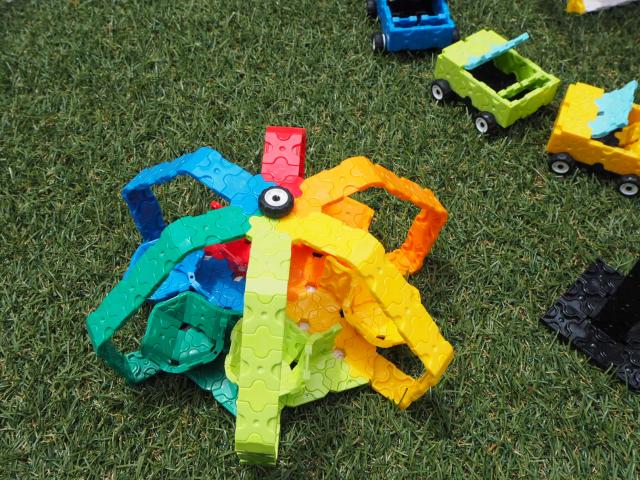 新型コロナウイルスの影響で外出自粛の中、ビデオ電話で打ち合わせながら、友達同士で力を合わせて作りました。虹色でカラフルにして、楽しい雰囲気にしています。 バイキング、コーヒーカップ、フリーフォール、自動車は、それぞれ動くように工夫しています!