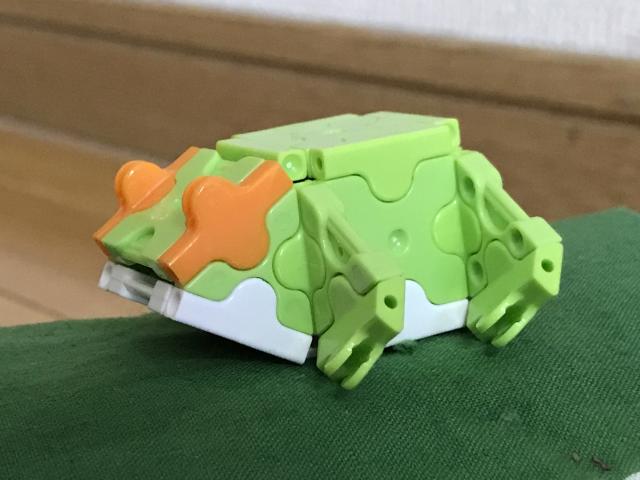 目が飛び出たところ。お腹が白いところと、手のパーツ選びを考えました。