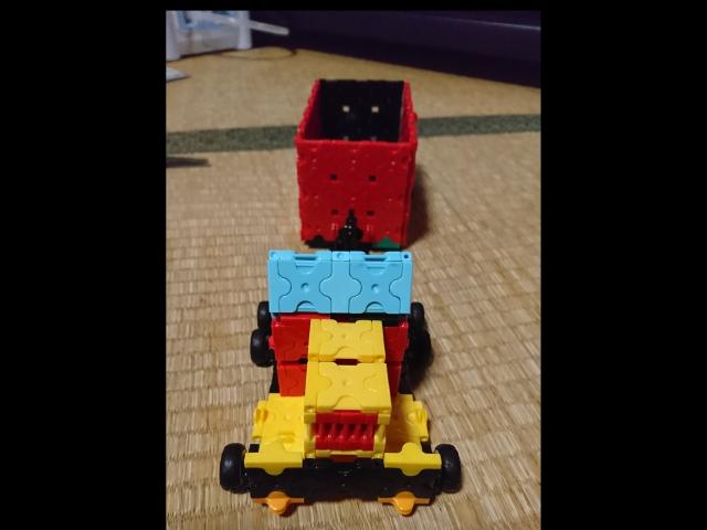 連結部をつけて後のコンテナが可動するように作ってます。コンテナにはトミカが乗せれます。