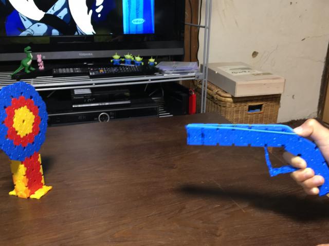 的を輪ゴム銃で 狙って撃つ 的の色で得点を決めて遊ぶ